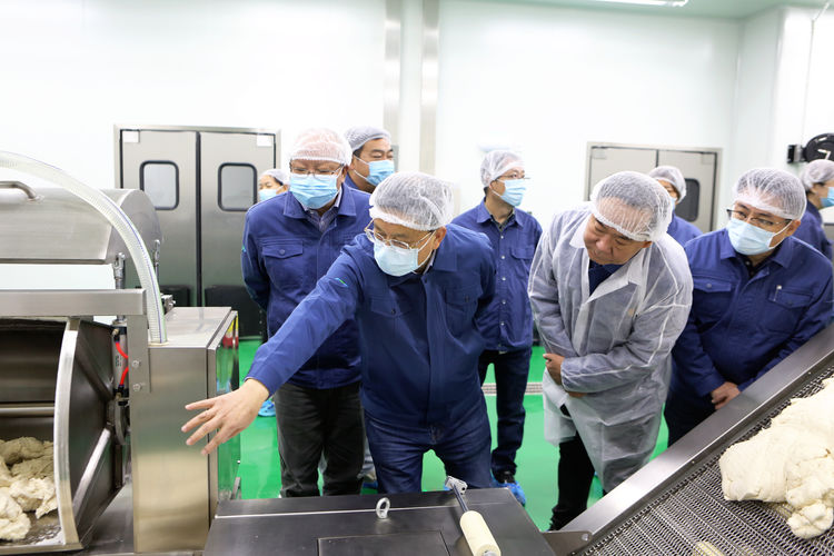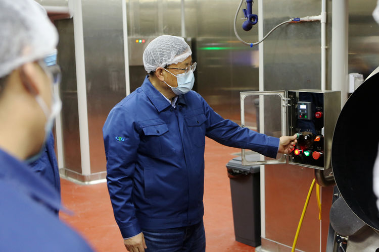 公司董事長(zhǎng)唐志堯啟動(dòng)配餐中心多功能炒菜鍋瞬間