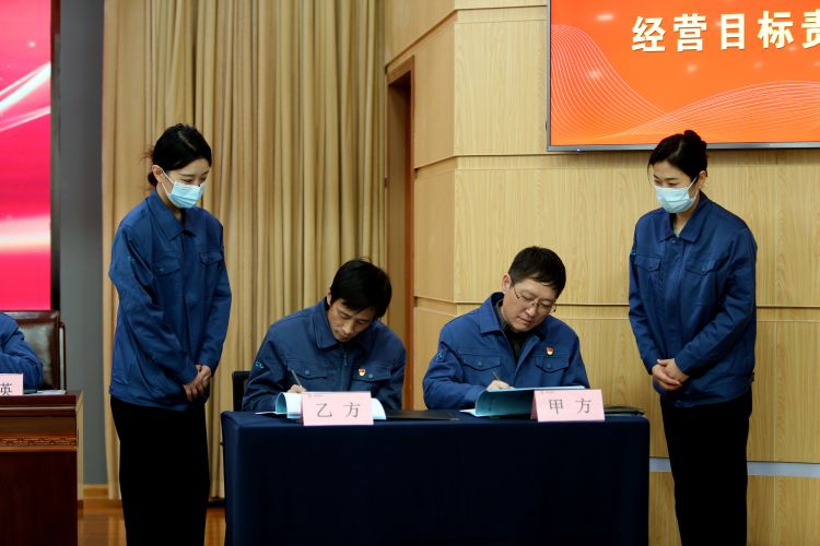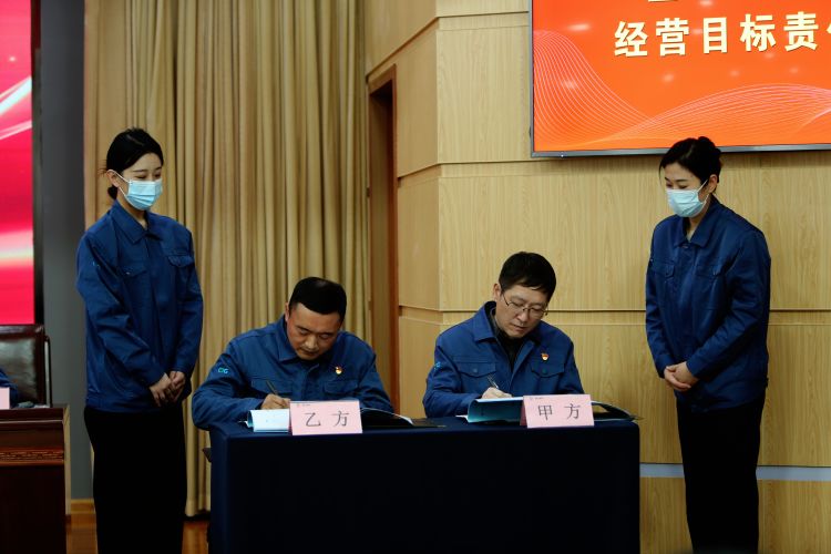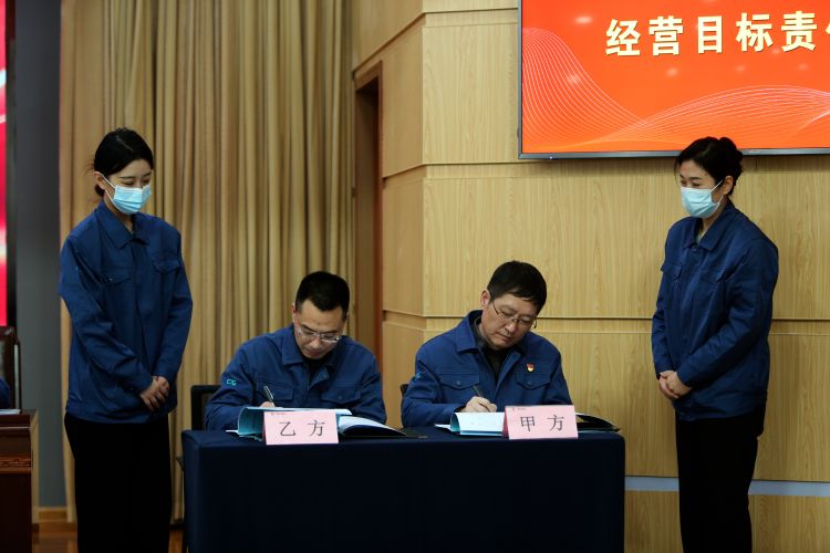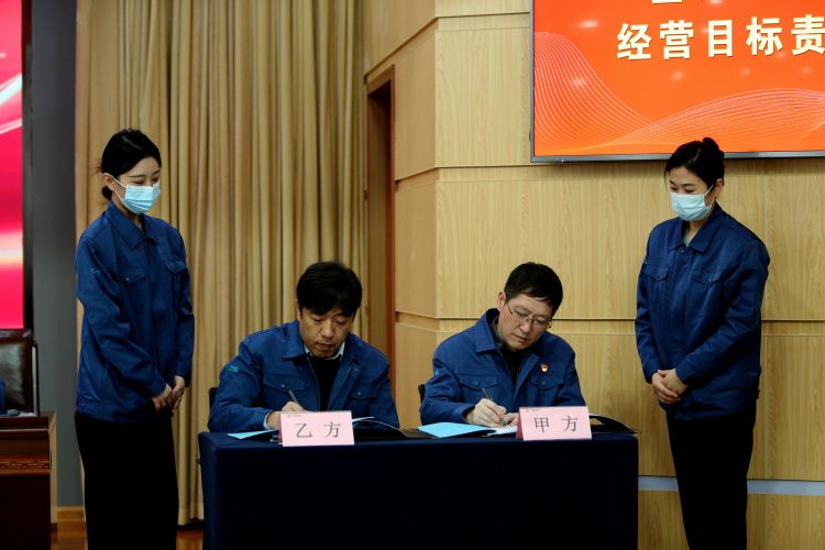 大會表彰了公司2022年度先進集體、先進個人和技術改進、管理提升等優(yōu)秀成果。總經(jīng)理呼躍武與鄒城公司、銷售部、三分廠、無紡布事業(yè)部、設備動力部等代表單位負責人簽訂了《2023年度經(jīng)營目標責任書》。