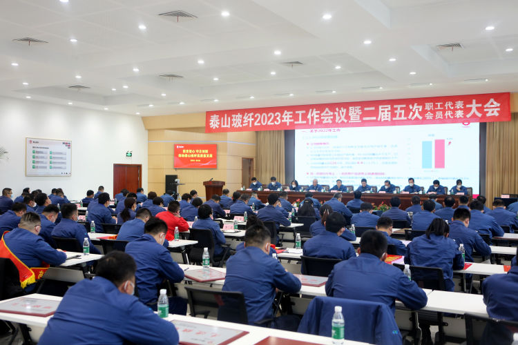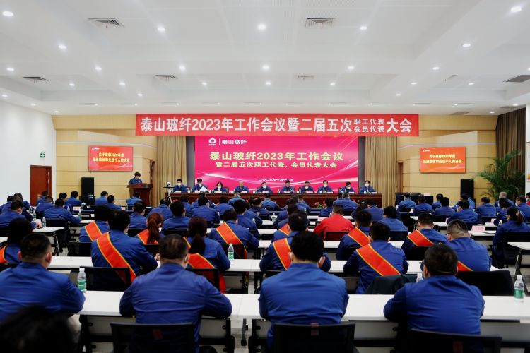 1月12日,泰山玻纖2023年工作會議暨二屆五次職工(會員)代表大會在泰安總部隆重召開。中材科技副董事長、泰山玻纖董事長唐志堯發(fā)表題為《堅定信心 守正創(chuàng)新 推動泰山玻纖高質量發(fā)展》的講話,中材科技副總裁,泰山玻纖黨委副書記、總經(jīng)理呼躍武作了題為《緊盯目標抓落實 改革創(chuàng)新促發(fā)展 在中國式現(xiàn)代化的新征程上再創(chuàng)佳績》的工作報告,會議由泰山玻纖黨委書記吳龍主持。大會采用“現(xiàn)場+視頻”方式舉行,公司領導班子成員,總部各部門負責人及以上管理干部、基層分工會主席、職工代表、先進集體和個人代表等110余人在泰安主會場參會。鄒城公司、淄博公司班子成員及中層管理干部、先進集體和個人代表等40余人在鄒城和淄博兩個分會場視頻參會。